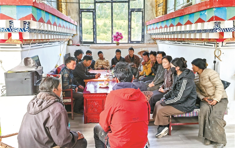 圖為洛隆縣馬利鎮(zhèn)布許村的“庭院議事屋”內(nèi),村干部與村民圍坐商討發(fā)展大計(jì)。記者 貢秋曲措 攝