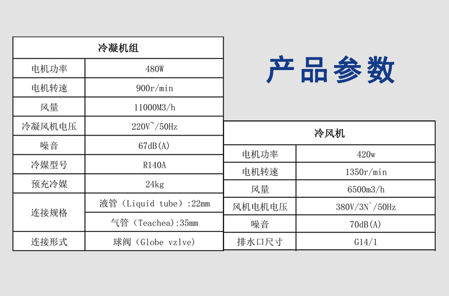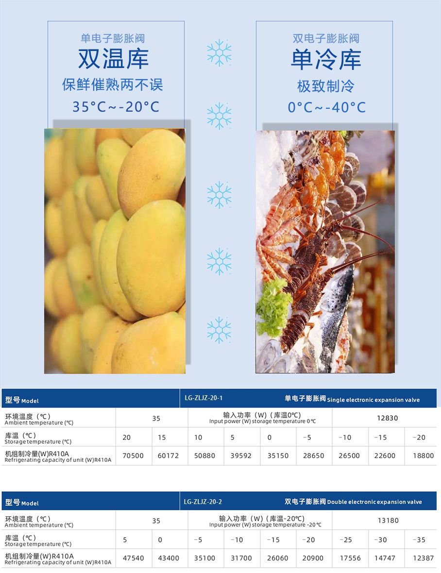 冷凝機組:LG-ZLJZ-20 冷媒型號:R410A 電壓:380V? ? ? 冷風機型號:LG-LFJ-20